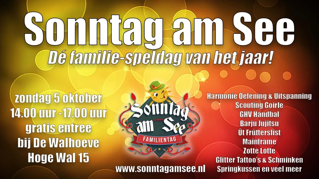 Op zondag 5 oktober 2025 is het weer Sonntag am see. Ook dit jaar staan wij met het jongerenwerk weer op deze super gezellige familiedag. Deze gezellige dag vindt plaats op het terrein van Goirle am see bij de Walhoeve, Hoge wal 15.